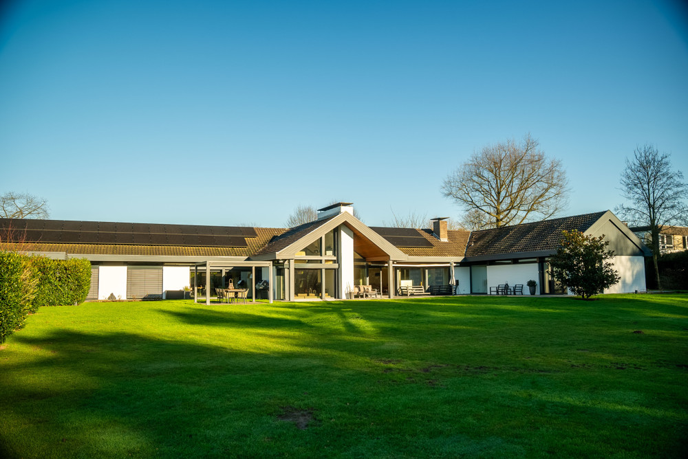 Technisch auf höchstem Niveau ausgestattet, verfügt das Anwesen über ein modernes KNX-Bussystem, Sicherheitskameras und dreifach verglaste Fenster mit Sensoren. Zwei private Zufahrten führen zum Grundstück, das mit zahlreichen Stellplätzen sowie einer Doppelgarage ausgestattet ist. Eine Photovoltaikanlage mit 30 kW Leistung und einem 16 kW Batteriespeicher sorgt für nachhaltige Energieversorgung.