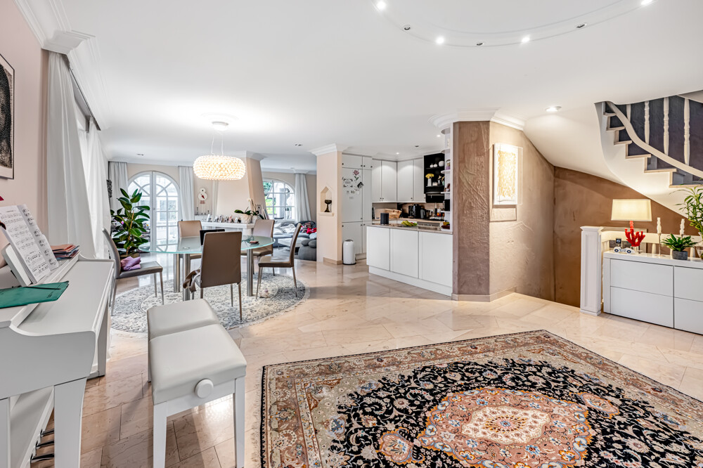 Großzügige Fensterflächen sorgen für helle, freundliche Räume und ein angenehmes Wohnklima. Klassische Stuckelemente an Wänden und Decken unterstreichen den eleganten Charakter des Hauses und verleihen den Wohnräumen eine besondere Note.