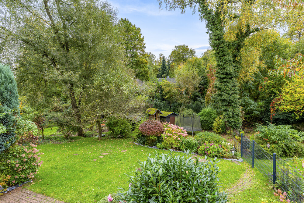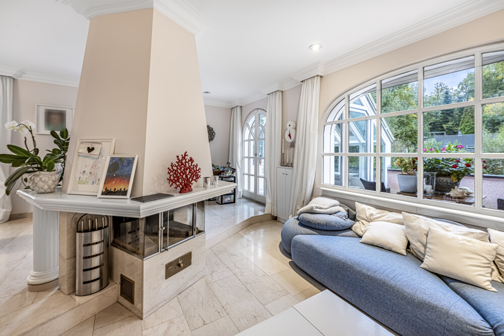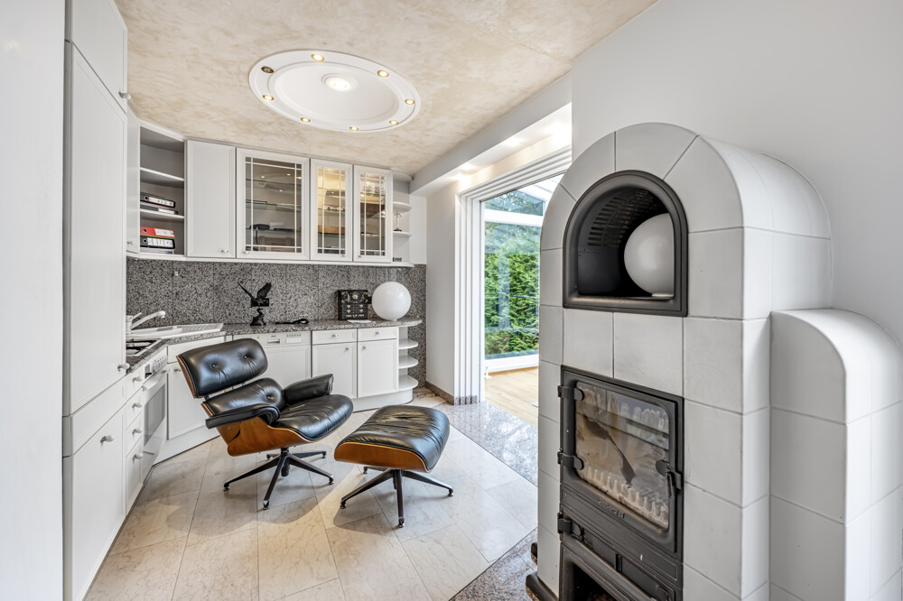 Das Haus verfügt über zwei Kamine, die sowohl im Wohnbereich als auch in der Einliegerwohnung für eine behagliche Atmosphäre sorgen. Das Wohnzimmer bietet einen direkten Zugang zur Terrasse und zum gepflegten Garten – ideal für entspannte Stunden im Freien.