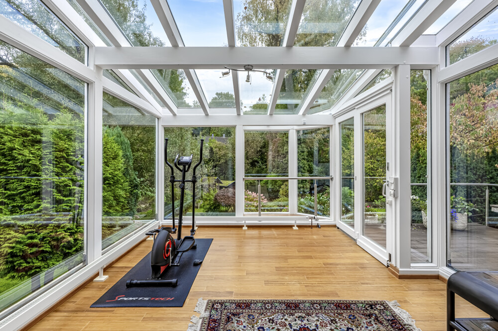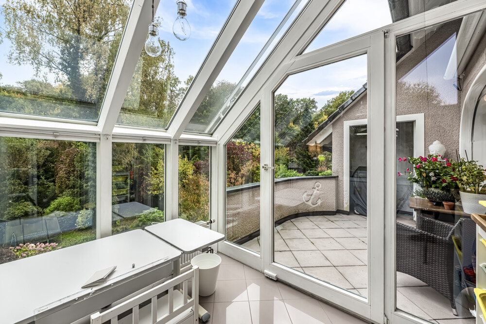 - Großzügiger, heller Wintergarten mit Blick ins Grüne