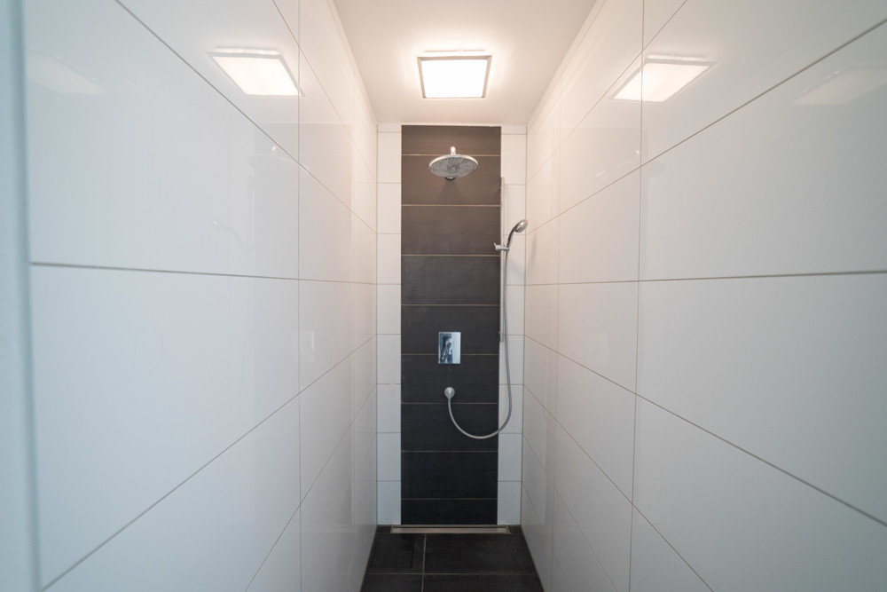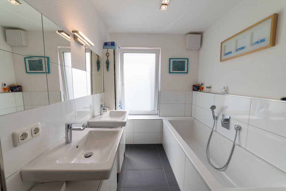 - Tageslicht-Bad mit Badewanne und ebenerdige Dusche (Villeroy & Boch, Hansgrohe)