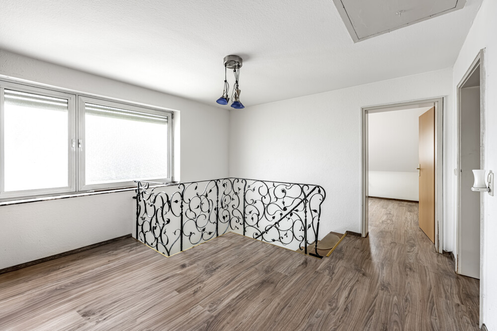 Das Haus erstreckt sich über drei Etagen und ist vollständig unterkellert. Ergänzt wird das Angebot durch eine Garage mit direktem Zugang über den Garten, eine kleine Werkstatt sowie einen großzügigen Gartenbereich mit viel Privatsphäre.