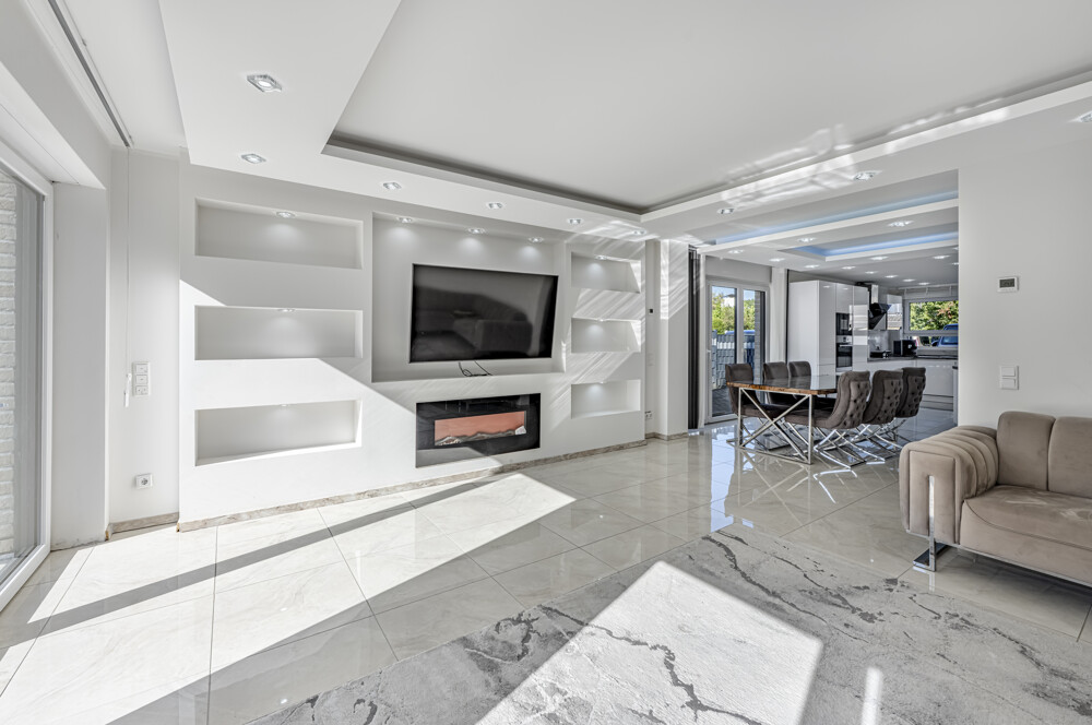 - Eleganter Kamin als zentrales Gestaltungselement für gemütliche Abende