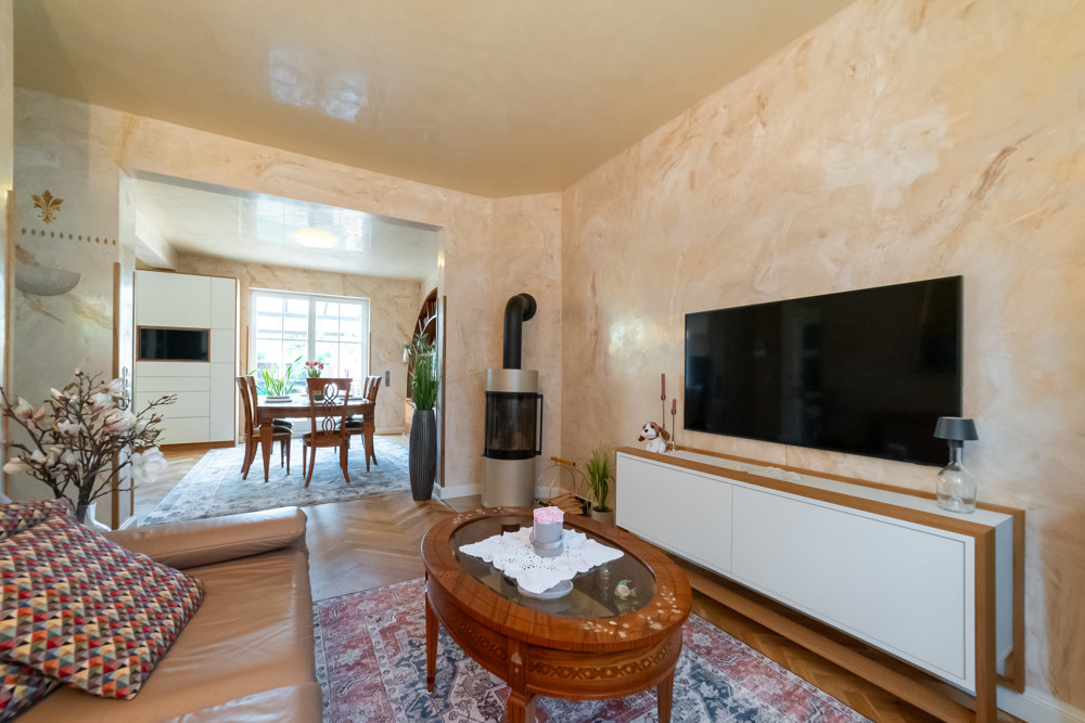 Diese wunderschöne kernsanierte Immobilie aus dem Jahr 1930 vereint historischen Charme mit modernem Komfort auf perfekte Weise. Mit einer großzügigen Wohnfläche von 140 m², verteilt auf 5,5 Zimmer, bietet dieses Haus sowohl Familien als auch anspruchsvollen Bewohnern viel Platz und Stil.