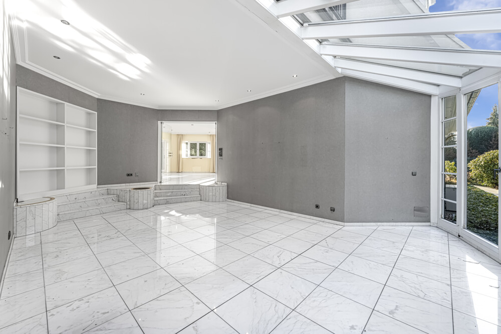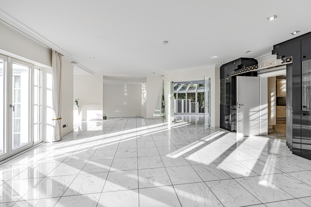 Die Wohnfläche von ca. 540 m² verteilt sich auf weitläufige, elegant proportionierte Räume mit klarer Zonierung von Wohnen, Arbeiten und Entspannen. Mehrere Schlafzimmer mit hochwertigen Bädern bieten höchsten Wohnkomfort und ein hohes Maß an Privatsphäre. Das Master-Schlafzimmer verfügt zudem über einen direkten Zugang zu einem Balkon mit Blick in den Garten. Ein besonderer Vorteil dieses Hauses liegt in seiner hohen Grundrissflexibilität: Die Raumstruktur lässt sich bei Bedarf problemlos anpassen, optimieren oder neu organisieren, sodass individuelle Wohnkonzepte jederzeit realisierbar sind.