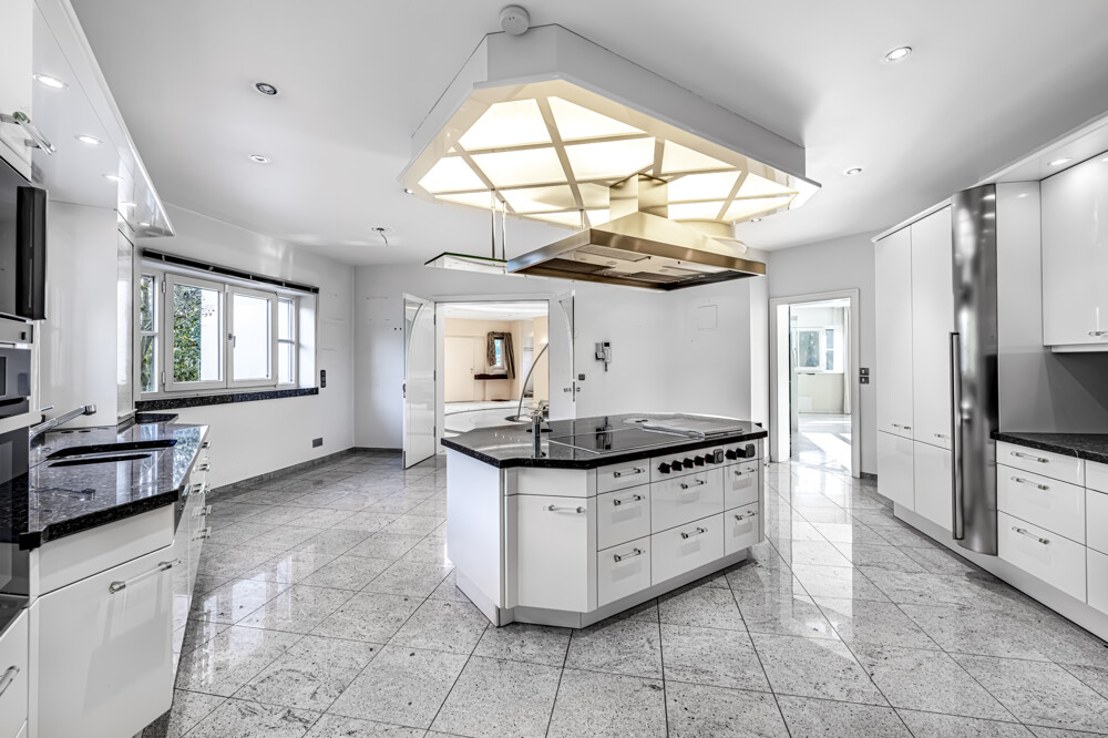 Der großzügige Küchenbereich erfüllt hohe kulinarische Ansprüche. Neben der stilvollen Gestaltung und der Offenheit zum Wohnbereich verfügt die Küche über einen professionellen Kühlraum, wie man ihn aus der gehobenen Gastronomie kennt – ein außergewöhnliches Detail, das dieses Anwesen auch für passionierte Gastgeber und Feinschmecker besonders attraktiv macht.
