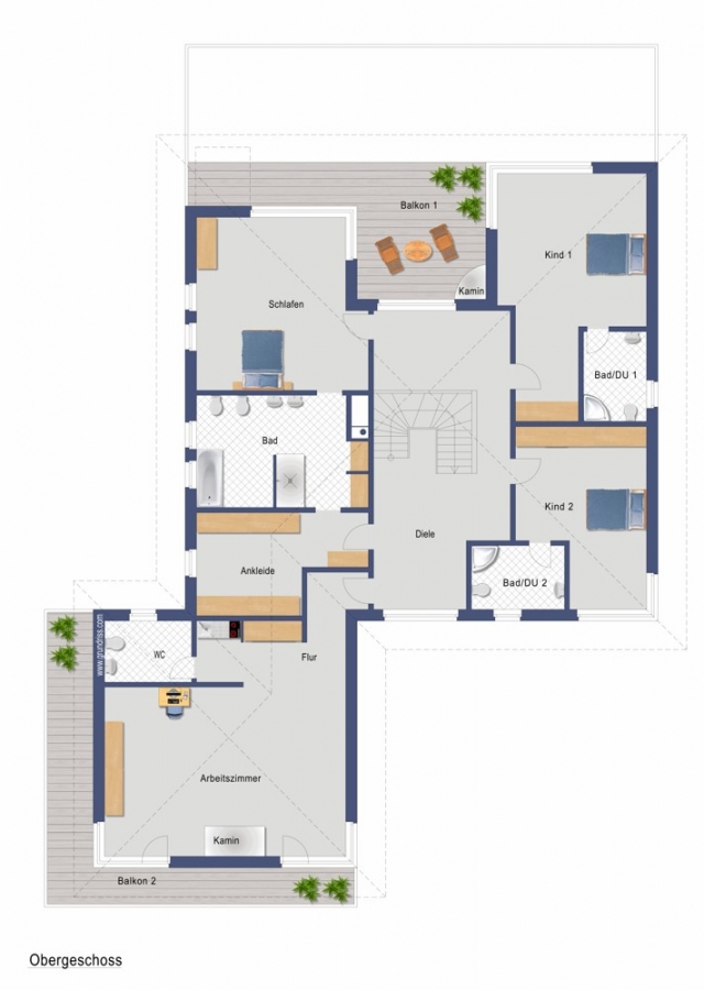 + 3 Kinder / Gästezimmer jeweils mit Bad en-suite