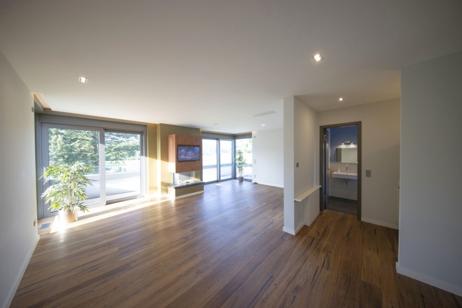 + Heimkino, Fitnessraum, Sauna, Wellnessbereich im Untergeschoss mit hohen Decken