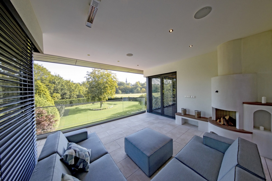 + Bodentiefe und hohe Fensterfronten mit elektrischen Außenjalousien im gesamten Haus