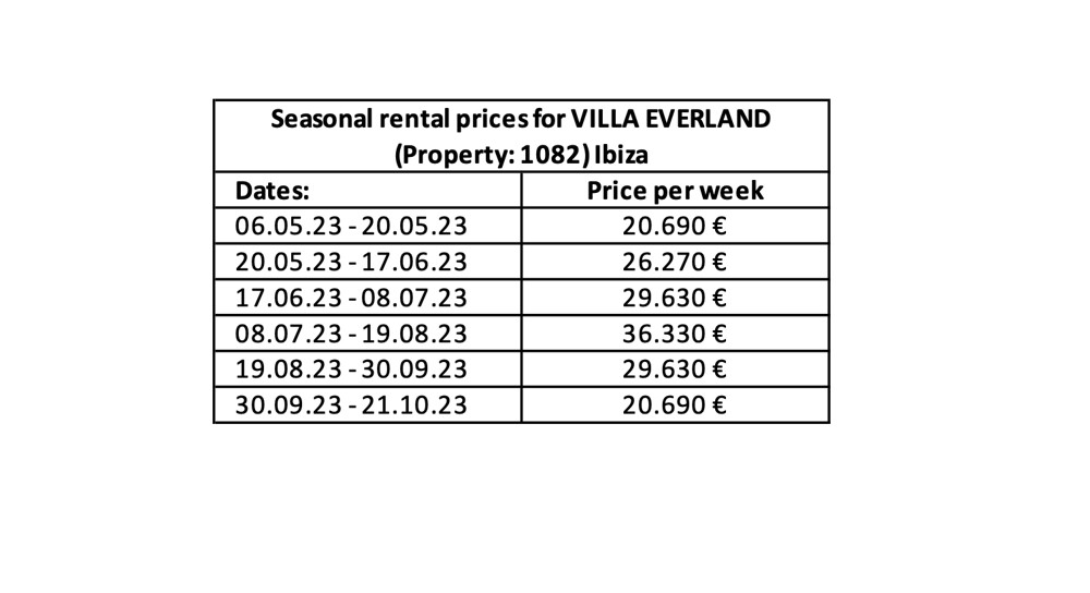 The villa is located on a hill in Sant Josep. Only 4 km away from Ibiza town, 5 minutes from the airport. The property is orientated south and has fantastic panoramic sea views up to Formentera.