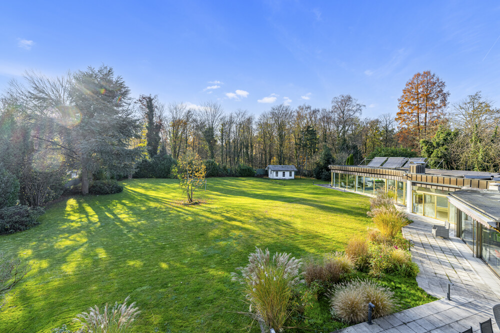 Im Erdgeschoss öffnet sich ein weitläufiger Wohnbereich, der Wärme, Komfort und Stil vereint. Die großzügige Küche, eine Bibliothek, ein lichtdurchfluteter Wintergarten sowie ein Arbeitszimmer fügen sich harmonisch in das offene Raumkonzept ein. Ein absolutes Highlight dieses Geschosses ist die imposante Schwimmhalle – ein luxuriöser Wellnessbereich mit direktem Zugang zur Terrasse und zum Garten. Hier trifft Wohnkomfort auf Rückzugsort, perfekt eingebettet in die Natur des angrenzenden Waldes.