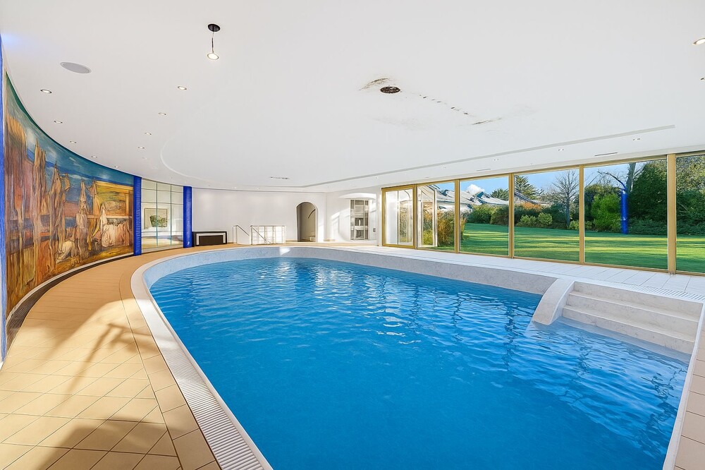 • Imposante Schwimmhalle mit Sauna und mit großer Fensterfront, direktem Garten- und Terrassenzugang