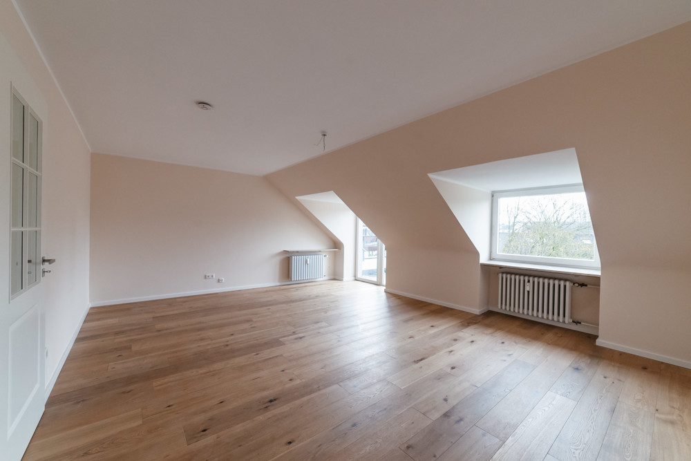 Die neu sanierte 4-Zimmerwohnung befindet sich im 4. Stock eines gepflegten Mehrfamilienhauses aus dem Jahr 1962 in Düsseldorf-Oberkassel. Mit einer großzügigen Wohnfläche von 91 m² bietet sie viel Platz und Komfort.