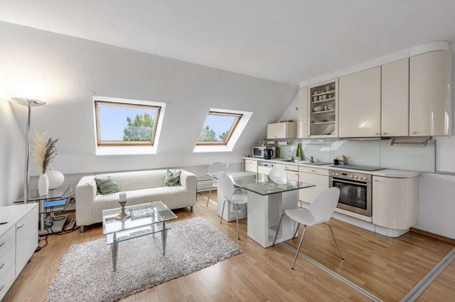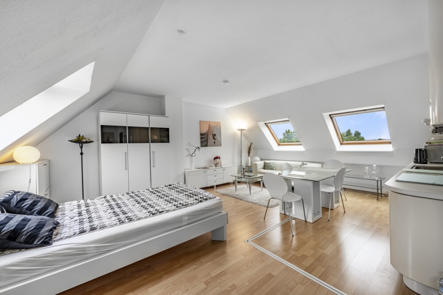 Dieses helle und gut geschnittene 1-Zimmer-Apartment im Dachgeschoss überzeugt mit einer Wohnfläche von ca. 43 m² und einer durchdachten Raumaufteilung.