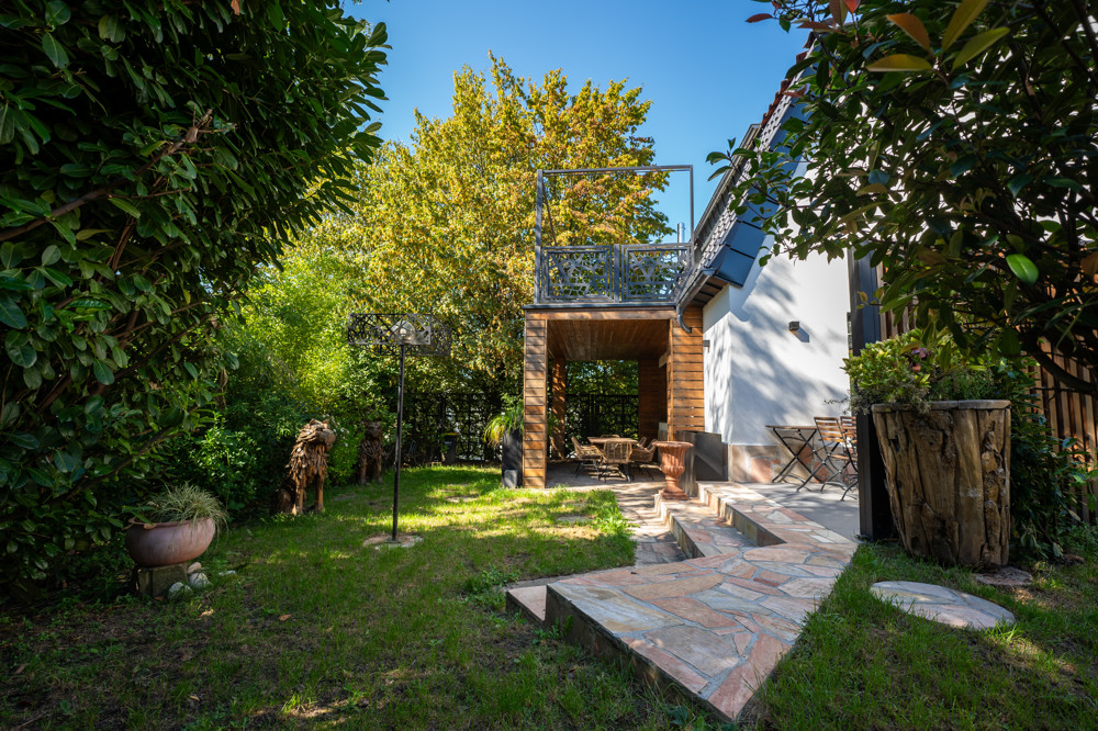 Die Erdgeschosswohnung verfügt über einen traumhaften Blick in den Garten. Auf einer Wohnfläche von etwa 160 m² findet man ein geräumiges Wohnzimmer mit offener Küche. Die Wohnung ist mit viel Liebe zum Detail ausgestattet und zeichnet sich durch weitläufig offenen Grundriss aus. Ein Schlafzimmer, ein Gäste-WC und eine nach Süden ausgerichtete Terrasse komplettieren das Angebot. Die Terrasse lädt zu gemütlichen Frühstücken oder einem Grillabend in der BBQ Outdoorküche ein.