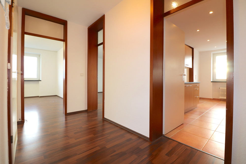 - Dunkler Nussbaum-Laminatböden in den Wohn- und Schlafräumen