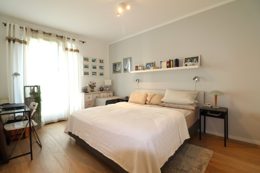 Sie betreten das Objekt über eine geräumige Diele mit Zugang zu jedem Raum. Ein Wohnzimmer mit offenem Wohn- und Essbereich, ein Schlafzimmer, zwei Badezimmer mit Dusche und Badewanne, ein Hauswirtschaftsraum sowie eine westlich ausgerichtete Loggia stehen dem zukünftigen Eigentümer zur Verfügung. Hier lässt sich die Nachmittags- und Abendsonne aufgrund der Westausrichtung der Loggia und direktem Blick auf den Park genießen.