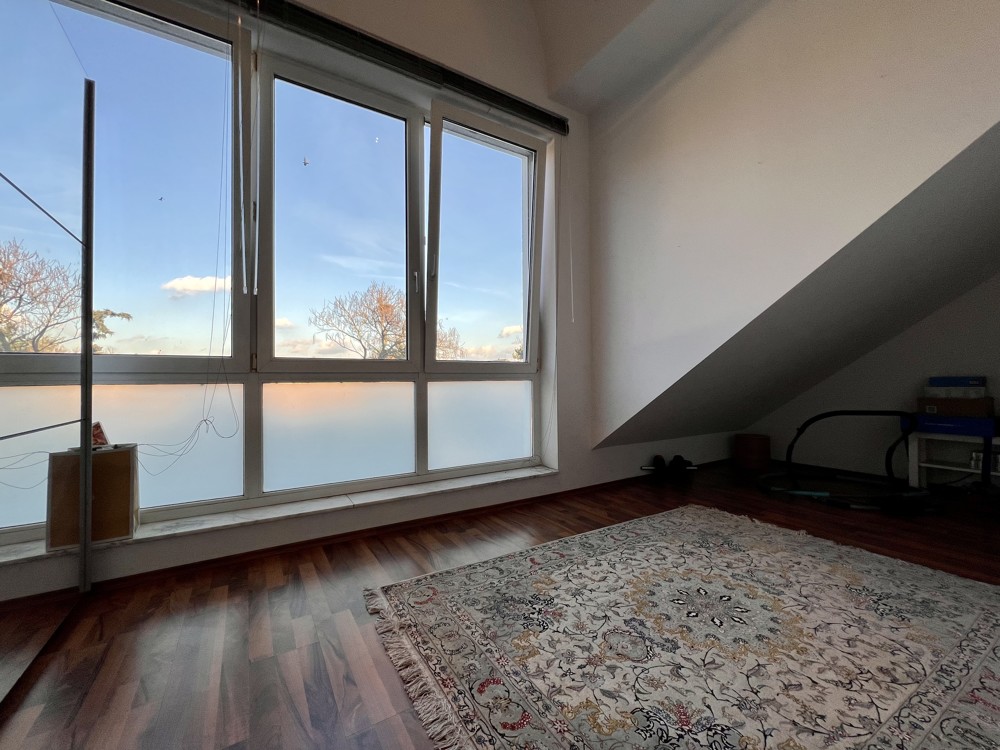 Über das Wohnzimmer gelangen Sie zu der eindrucksvollen Dachterrasse der Immobilie, welche mit einer Fläche von ca. 14 m² vielseitig nutzbar ist und mit einem imposanten Ausblick über die Villengegend begeistert.