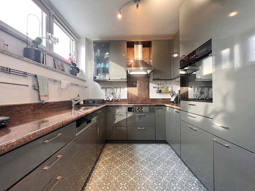 - Einbauküche mit Backofen, Spülmaschine und Elektrogeräten