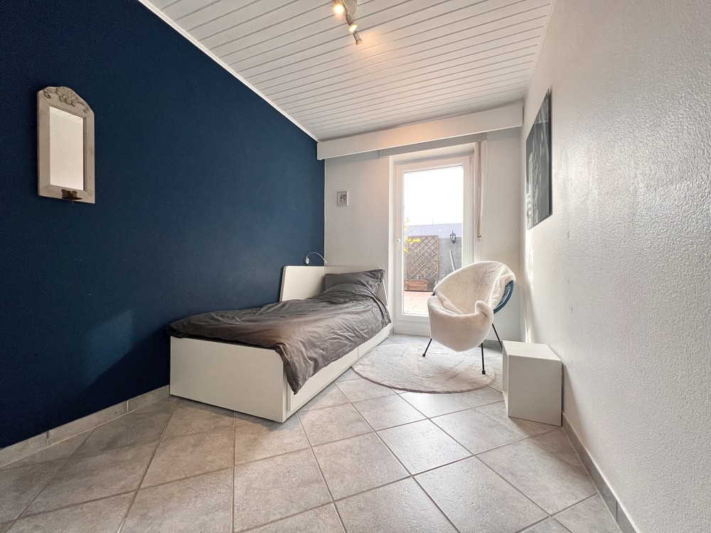 Die drei taghellen Schlafzimmer, von denen jedes über einen eigenen Zugang zur Dachterrasse verfügt, bieten Ihnen, je nach individuellen Bedürfnissen, diverse Nutzungsmöglichkeiten.