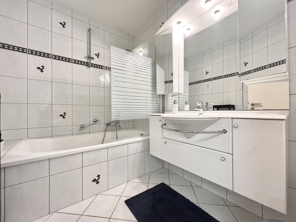 Neben dem Hauptschlafzimmer befindet sich das moderne Badezimmer mit Badewanne sowie ein separates WC.