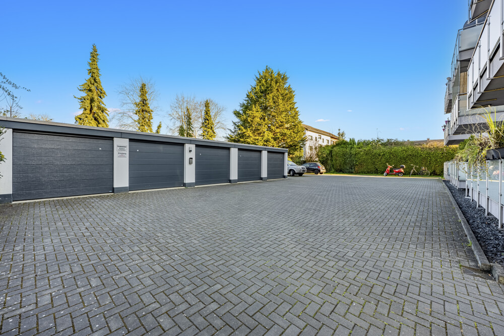Ergänzend gehört zu jeder Wohnung ein Außenstellplatz oder eine Garage, die erworben werden können.