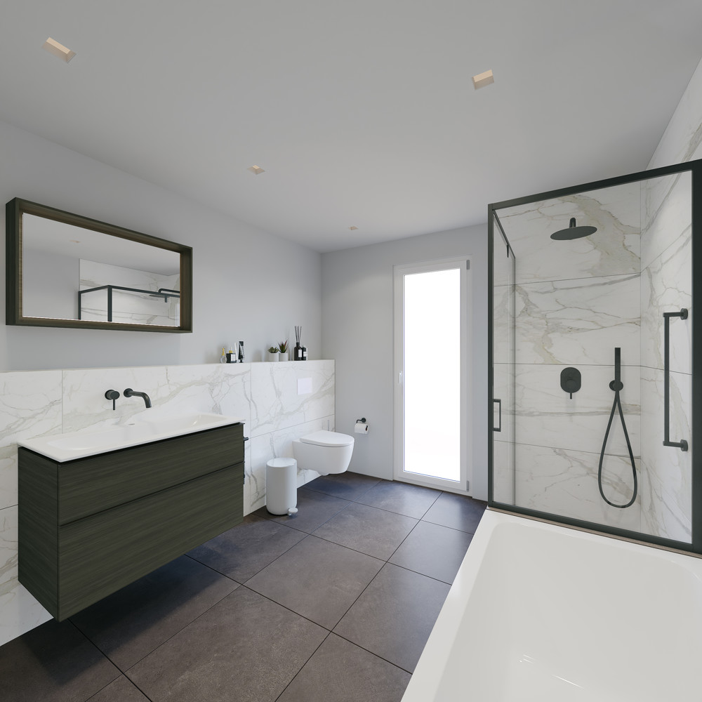 Die Informationen in diesem Exposé wurden nach bestem Wissen und Gewissen erstellt. Dennoch kann für die Richtigkeit der Angaben keine Gewähr übernommen werden. Die Visualisierungen stellen unverbindliche Anschauungsbeispiele im Rahmen der Vorplanung dar. Dabei wurden auch Sonderausstattungen ausgewählt, die nicht im Kaufpreis enthalten sind.