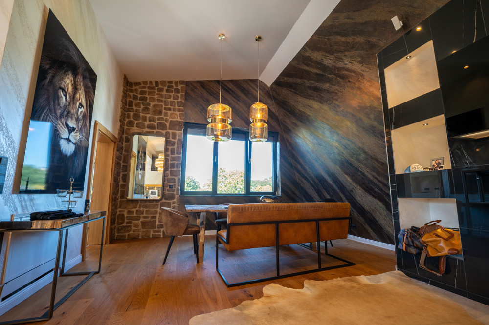 Elegantes Design bildet in Verbindung mit charaktervollen Materialien und hochwertiger italienischer Putztechnik "Stucco Veneziano" die Grundlage für ein luxuriöses Wohnambiente.