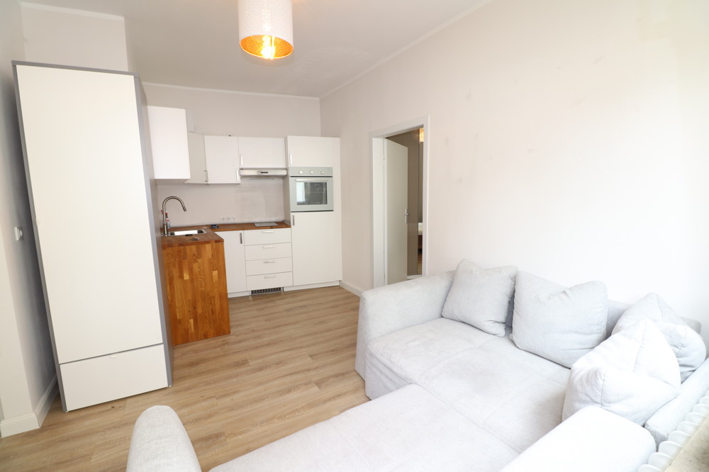 Diese moderne und vollmöblierte 2-Zimmer-Wohnung ist ideal für Geschäftsleute bzw. Wohnen auf Zeit. Durch eine bungalowmäßig eingeschossiges Hinterhaus liegt die Wohnung von der Straße lärmgeschützt im hinteren Bereich des Grundstückes, in zentraler Lage von Düsseldorf-Pempelfort. Privatsphäre ist durch das Treppenhaus mit separatem Eingang zur Wohnung gegeben. Erst kürzlich hochwertig kernsaniert und komplett mit neuen modernen Möbeln ausgestattet bietet die Wohnung jeglichen Wohnkomfort. Bei diesem Angebot handelt es sich um eine Pauschalmiete inklusive Nebenkosten! Die Küche ist mit allem Notwendigen eingerichtet; wie Kühlschrank, Geschirrspüler, Backofen, Waschmaschine, Trockner etc.. Auch eine Schlafcouch, Bett sowie ein Kleiderschrank und Gardinen. Die Außenterrasse rundet das attraktive Immobilienangebot ab.